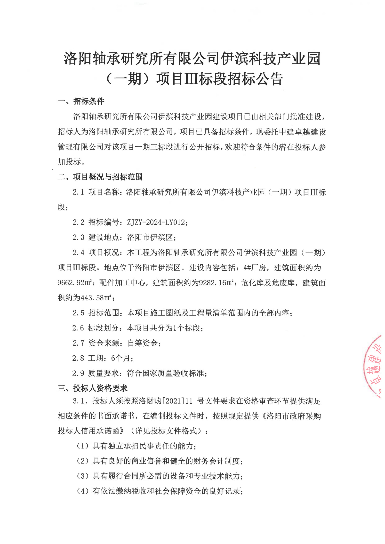 洛陽(yáng)軸承研究所有限公司伊濱科技產(chǎn)業(yè)園建設(shè)項(xiàng)目一期一標(biāo)段輔房精裝修中標(biāo)結(jié)果公告
