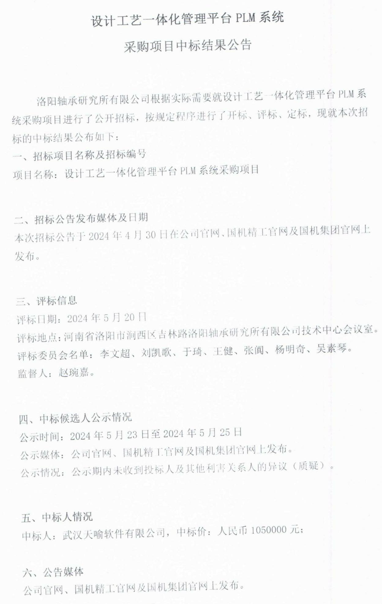 設(shè)計工藝一體化管理平臺PLM系統(tǒng)采購項目中標(biāo)候選人公示