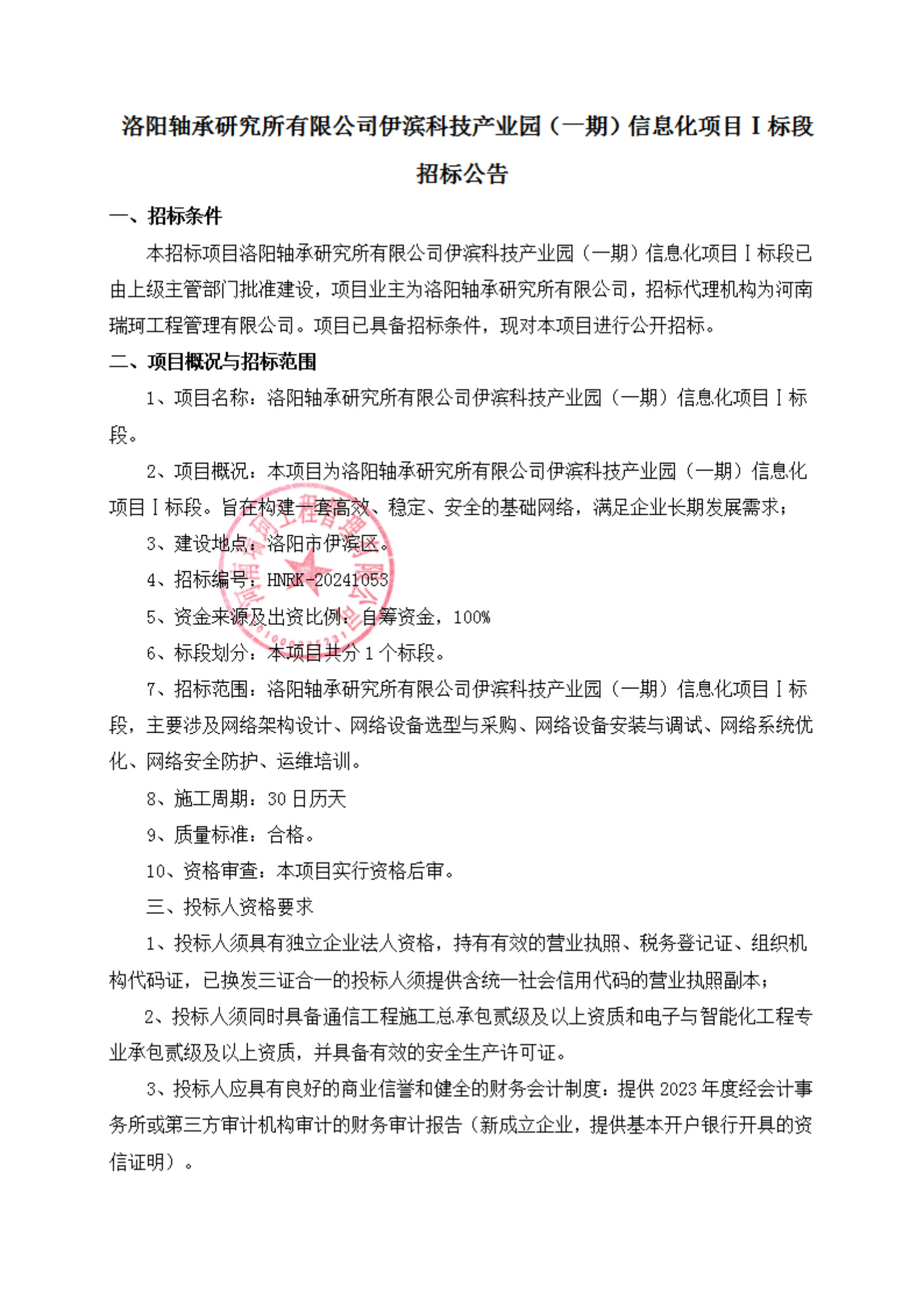 洛陽(yáng)軸承研究所有限公司伊濱科技產(chǎn)業(yè)園(一期)信息化項(xiàng)目Ⅰ標(biāo)段結(jié)果公示