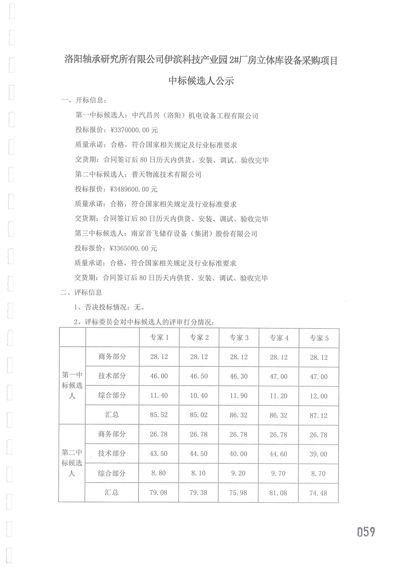 洛陽(yáng)軸承研究所有限公司伊濱科技產(chǎn)業(yè)園2#廠房立體庫(kù)設(shè)備采購(gòu)項(xiàng)目中標(biāo)公告