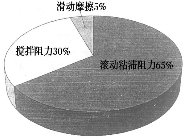 自動(dòng)變速箱類的變速驅(qū)動(dòng)橋中,差動(dòng)裝置多用自動(dòng)變速箱油( ATF )進(jìn)行潤(rùn)滑;在前置后驅(qū)車(FR車)和四輪驅(qū)動(dòng)力(4WD)上搭載的后差動(dòng)裝置則采用黏度較高的齒輪油潤(rùn)滑。后差動(dòng)裝置的小齒輪軸用圓錐滾子軸承產(chǎn)生轉(zhuǎn)矩的原因分析如圖1所示,其滾動(dòng)粘滯阻力是源于滾道和滾子接觸部位的潤(rùn)滑油膜的阻力。