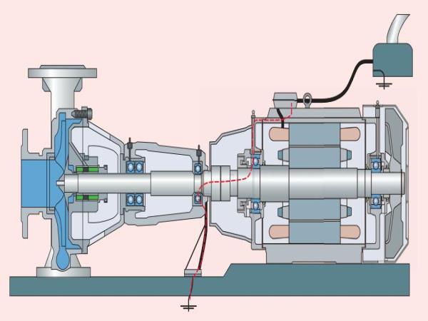 保護(hù)接地電壓,類(lèi)似問(wèn)題出現(xiàn)在較高頻率的較差電纜上,是變頻器輸出共模電壓的結(jié)果。如果回流電纜的阻抗太高且定子接地差,那么電流就會(huì)走定子的路徑,穿過(guò)軸承,通過(guò)軸到驅(qū)動(dòng)機(jī)械的地面(圖4)。
