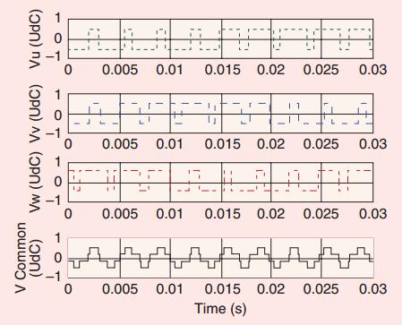 絕緣柵雙極型晶體管被用于創(chuàng)建脈沖寬度調(diào)制(PWM)輸出電壓波形,特征是在電動(dòng)機(jī)中快速轉(zhuǎn)換以及在轉(zhuǎn)換器輸出中電壓可快速上升到8 kV,這提高了驅(qū)動(dòng)器的效率和動(dòng)態(tài)性能。使用PWM變頻器的副作用是快速轉(zhuǎn)換( 100 ns)引起的高頻(HF)電流現(xiàn)象。PWM變頻器是固有的共模電壓和陡前沿脈沖(快速電壓轉(zhuǎn)換)引起各種高頻交流電的源頭??焖俎D(zhuǎn)換引發(fā)的高頻(5 kHz ~ 10MHz)電流造成了軸承損傷。