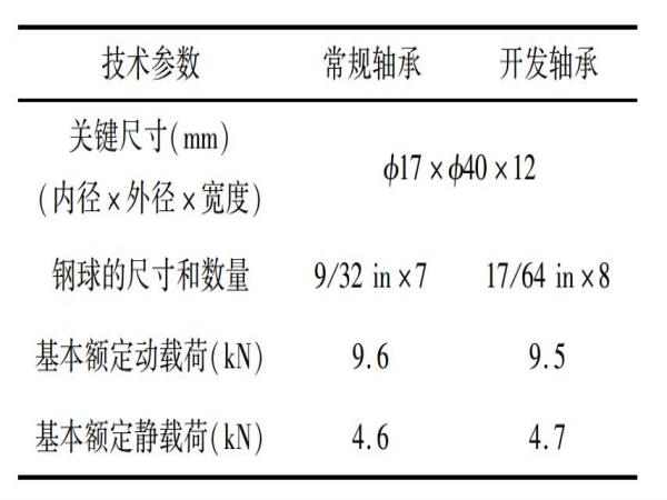 設(shè)置開發(fā)品的內(nèi)部技術(shù)參數(shù)時(shí),保持與常規(guī)產(chǎn)品相當(dāng)?shù)某休d能力,并通過修改鋼球尺寸,減小PCD,減少發(fā)熱。軸承內(nèi)部技術(shù)參數(shù)見表1。
