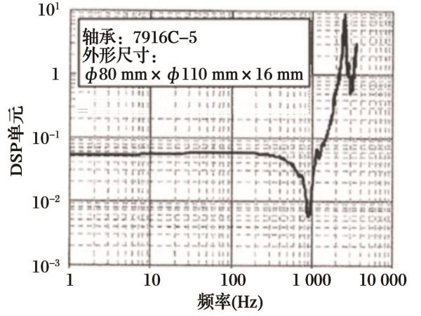 當(dāng)轉(zhuǎn)速為5 000 r/ min,且主軸在徑向振動時的動態(tài)剛度測量實例如圖2所示。X軸為輸入頻率,Y軸為量綱一的剛度。當(dāng)頻率為900 Hz左右時剛度降低,并能確定主軸在徑向的一維固有頻率。