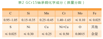 GCr15材料常用來制作室溫下工作的航空航天軸承,其化學成分見表2。
