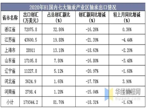 七大軸承產(chǎn)業(yè)集聚區(qū)1-6月累計(jì)軸承出口創(chuàng)匯179344.2萬美元,占總創(chuàng)匯額比81.76%,同比下降18.31%,較上月的-16.68%擴(kuò)大了1.63個(gè)百分點(diǎn)。