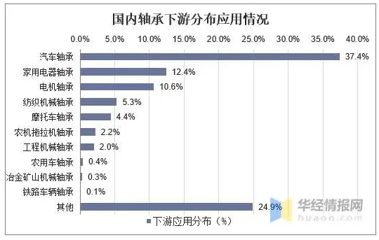 軸承下游廣泛應(yīng)用于工業(yè)自動(dòng)化、高端裝備、機(jī)器人、汽車制造、工程機(jī)械、家用電器、電動(dòng)工具、紡機(jī)、農(nóng)林機(jī)械、國(guó)防、能源、航空航天及軌道交通等領(lǐng)域。