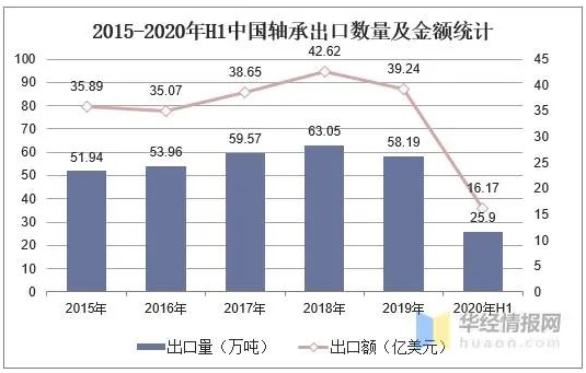 出口方面,據(jù)統(tǒng)計(jì),截至到2020年上半年中國(guó)軸承出口數(shù)量為25.9萬噸,同比下降45.7%,出口金額為16.17億美元,同比下降17.4%。