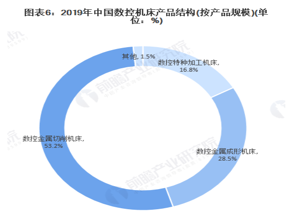 發(fā)展數(shù)控機(jī)床智能化,可從數(shù)控機(jī)床的各細(xì)分產(chǎn)品出發(fā)。從數(shù)控機(jī)床產(chǎn)品結(jié)構(gòu)看,中國(guó)數(shù)控機(jī)床產(chǎn)品比較多的為數(shù)控金屬切削機(jī)床,占比達(dá)到53.2%。
