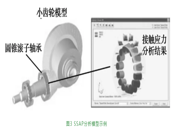 利用SSAP對小齒輪軸承邊緣應(yīng)力進行分析的結(jié)果如圖3所示。基于這些結(jié)果,優(yōu)化了圓錐滾子軸承的內(nèi)部設(shè)計,以減少邊緣應(yīng)力,這種設(shè)計成功延長了軸承壽命。