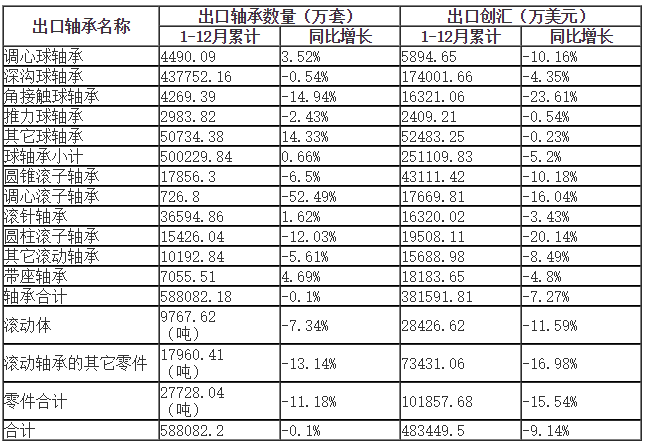 截止2020年12月份,共累計出口創(chuàng)匯48.34億美元,比去年同期下降9.14%,較上個月的-10.83%收窄了1.69個百分點。出口軸承58.81億套,比去年同期下降0.1%,較上個月的-2.05%收窄了1.95個百分點;