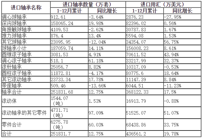 截止2020年12月份,我國累計進口用匯43.66億美元,比去年同期增長19.78%。較上個月的19.1%上漲了0.68個百分點進口軸承25.18億套,比去年同期增長12.75%,較上個月的13.16%降低了0.41個百分點;