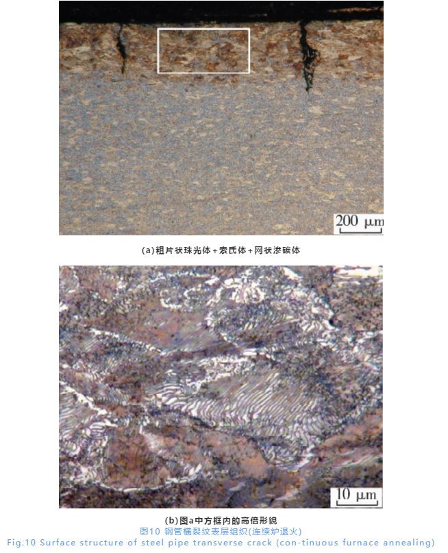 將表層的脫碳層和細(xì)片狀珠光體一起算作總脫碳層測(cè)量深度,會(huì)對(duì)退火爐的爐況評(píng)價(jià)及工藝調(diào)整產(chǎn)生誤導(dǎo),也會(huì)造成供需雙方的質(zhì)量爭(zhēng)議,易引起不必要的糾紛。若細(xì)片狀珠光體層較深,還會(huì)引起冷拉橫裂甚至斷裂,從而導(dǎo)致產(chǎn)品報(bào)廢。