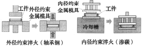 在熱處理的尺寸變化時,利用該變化進行約束淬火是降低熱處理變形的有效對策之一。軸承并不像齒輪那樣形狀復(fù)雜,由于形狀簡單,一直在實施約束淬火,不過,約束淬火的熱處理成本比普通熱處理費用高是有待解決的問題。