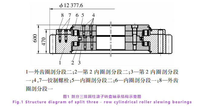 1、超大型剖分三排圓柱滾子轉(zhuǎn)盤軸承結構