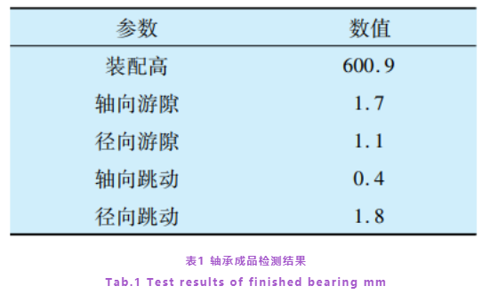 采用優(yōu)化工藝加工后軸承的各項技術指標檢測結果見表1,滿足技術要求。軸承交付使用后,未發(fā)現(xiàn)異常現(xiàn)象。