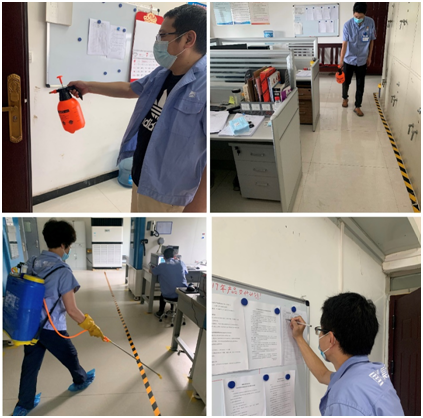 軸研所下屬空間軸系開發(fā)部在復工當天,組織人員各司其職,按照要求配比消殺溶液,對部門一樓試驗區(qū)域內產品跑合實驗室、更衣室、粗洗間、精洗間、產品性能測試室等共計22個房間和三、四樓辦公區(qū)的9個辦公室及公共區(qū)域進行了全方位的消殺工作。各個房間均配有消殺防疫記錄表,每次消殺完成后有專人負責檢查記錄,部門人員已經充分做好了常態(tài)化防控疫情的準備。