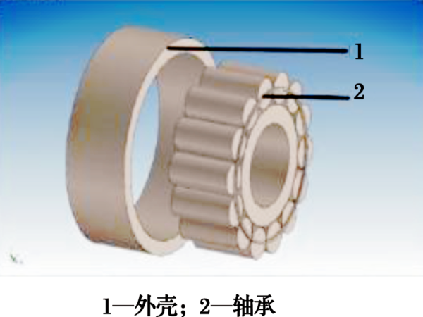 圓柱滾子軸承標(biāo)準(zhǔn)尺寸為外徑150 mm,寬度30 mm,故外殼內(nèi)徑為155 mm,游隙為5 mm。寬度方向上不需要游隙,故外殼寬度為30 mm。外殼與軸承的配置如圖7所示以保證清洗時(shí)外殼能固定軸承。