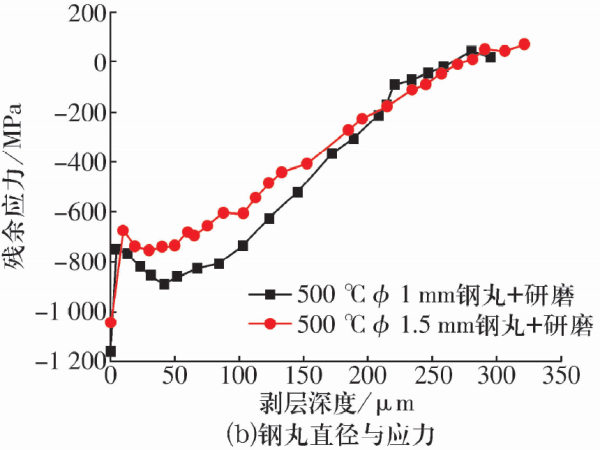 圖14 噴丸對(duì)8Cr4Mo4V鋼殘余應(yīng)力及硬度的影響