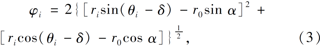 根據(jù)直角坐標(biāo)系與極角坐標(biāo)系的轉(zhuǎn)換關(guān)系,采用修正后的極角、極徑進(jìn)行位置度φ的評價(jià),即