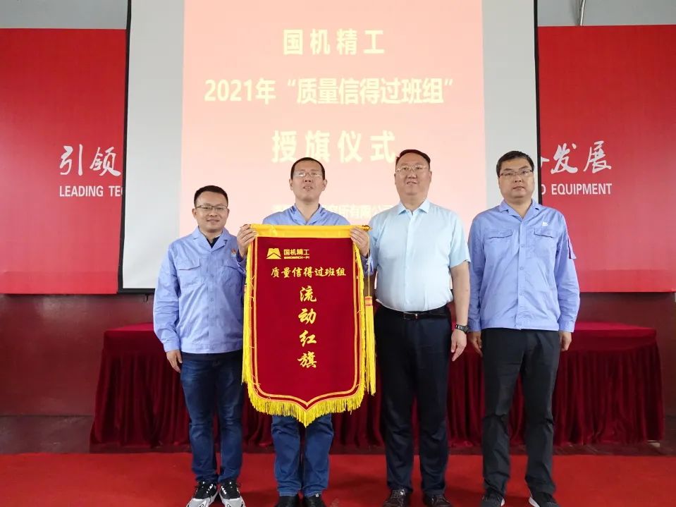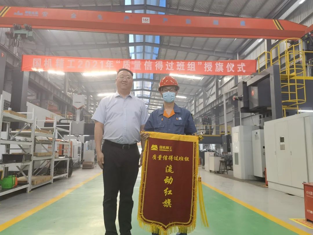 在授旗儀式現(xiàn)場,閆寧宣讀了《關(guān)于公布國機精工2020年度質(zhì)量信得過班組的通知》并為獲得榮譽班組授旗,獲獎班組組長發(fā)表了獲獎感言。王子君部署了公司質(zhì)量信得過班組建設工作要求與安排。