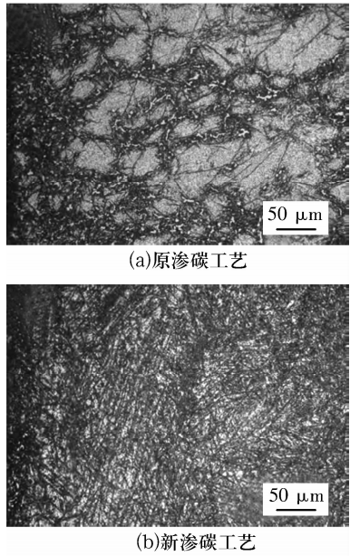 網(wǎng)狀碳化物屬于脆性相,會(huì)嚴(yán)重降低滲碳軸承鋼的韌性和疲勞性能,且易造成淬火開裂。為防止形成粗大、網(wǎng)狀碳化物,在滲碳過程中常采取的措施主要有: