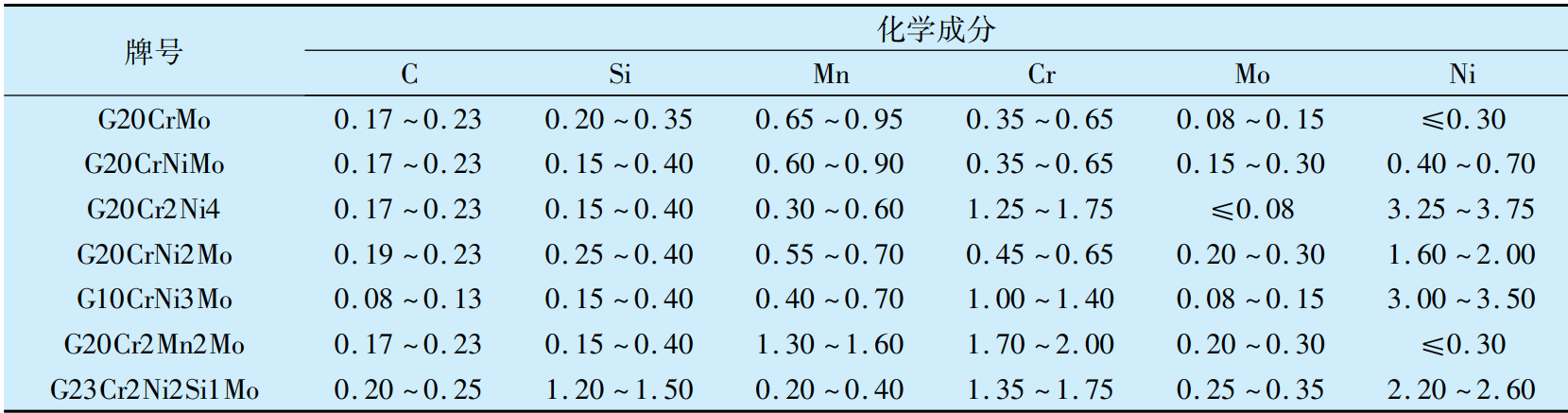 表1 我國(guó)滲碳軸承鋼牌號(hào)及其化學(xué)成分(質(zhì)量分?jǐn)?shù))