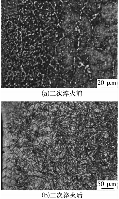 滲碳軸承鋼具有高強(qiáng)度、高韌性和高疲勞壽命的特點(diǎn),常用于有大沖擊載荷的工況,不同的熱處理工藝使其產(chǎn)生不同的微觀組織,對(duì)滲碳層組織和材料力學(xué)性能產(chǎn)生重要的影響。滲碳軸承鋼由表面至心部滲碳層碳濃度處于連續(xù)變化狀態(tài),同時(shí)心部組織與滲碳層組織之間還存在力學(xué)性能匹配問題,通過熱處理工藝參數(shù)的合理搭配使?jié)B碳層組織和基體組織的匹配性達(dá)到最優(yōu)組合,是一個(gè)漫長(zhǎng)且復(fù)雜的研究過程。而且,滲碳軸承鋼在滲碳及后續(xù)熱處理過程中可能產(chǎn)生的組織缺陷,如網(wǎng)狀碳化物、表面脫碳、殘余奧氏體過多等,也增加了滲碳軸承鋼熱處理的難度。通過對(duì)滲碳軸承鋼淬火后表層組織和心部組織的控制,改善表面性能,也是目前滲碳軸承鋼的一個(gè)重要研究方向。