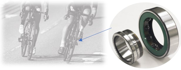 捷太格特推出的組合陶瓷角接觸球軸承,應(yīng)用在競速用自行車輪轂支撐部分。通過內(nèi)外圈采用不銹鋼材料來抑制軸承生銹,因此可以更加適用于潮濕和雨水天氣。軸承為可拆分式構(gòu)造,能縮短在比賽中維護(hù)或添加潤滑油的時間。同時,滾動體采用陶瓷材質(zhì)以減輕阻力,更快、更輕便的特性,為自行車賽車手們在激烈的比賽中獲得巨大的優(yōu)勢。
