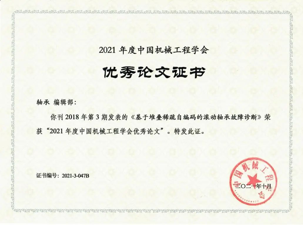恭喜侯榮濤教授團(tuán)隊(duì)獲得“2021年度中國機(jī)械工程學(xué)會(huì)優(yōu)秀論文”!也感謝廣大作者、讀者、編委、審稿專家對《軸承》長久以來的信任與支持!我們將始終秉持“交流軸承領(lǐng)域科研成果,推動(dòng)軸承行業(yè)技術(shù)進(jìn)步”的初心,繼續(xù)努力,將《軸承》辦得更好!