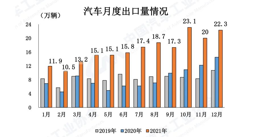 值得關(guān)注的是,汽車各月出口同比均保持快速增長,其中四季度月均出口量超過20萬輛,表現(xiàn)更為突出。