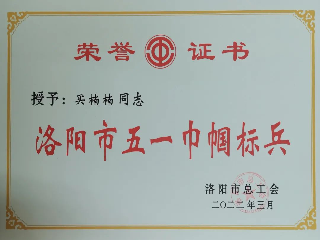 近日,洛陽市總工會表彰了“2021年度洛陽市女職工工作先進(jìn)集體和先進(jìn)個人”,洛陽軸承研究所有限公司制造服務(wù)事業(yè)部非金屬材料開發(fā)部買楠楠同志被授予“洛陽市五一巾幗標(biāo)兵”榮譽(yù)稱號。