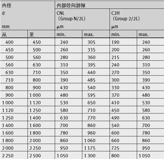 圖3 大型風(fēng)電調(diào)心滾子軸承游隙建議表
