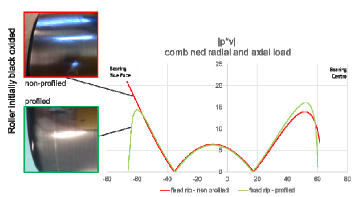 調(diào)心滾子修形,通常對數(shù)曲線為常用的修形曲線,能有效避免邊緣應(yīng)力的產(chǎn)生,以優(yōu)化接觸應(yīng)力均勻分布,以降低摩擦因子PV值,降低早期磨損的風(fēng)險。