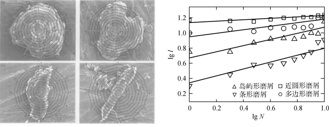 Fig.5 Radar graph characterization of wear debris profiles with different profiles and its double logarithmic coordinates[58]