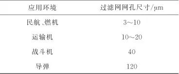 表1 不同應(yīng)用中的潤滑油過濾網(wǎng)過濾精度