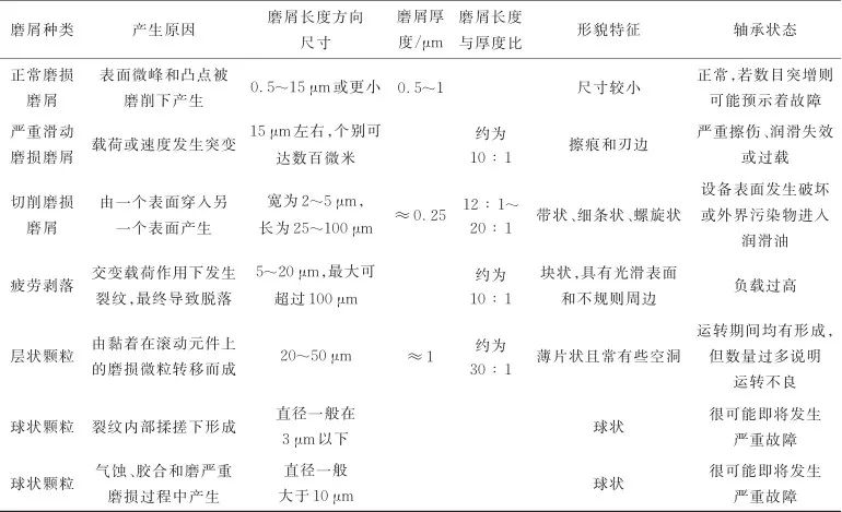 表2 主軸軸承運行中黑色顆粒產(chǎn)生原因、尺寸范圍、形貌特征及含義[18,60?63]