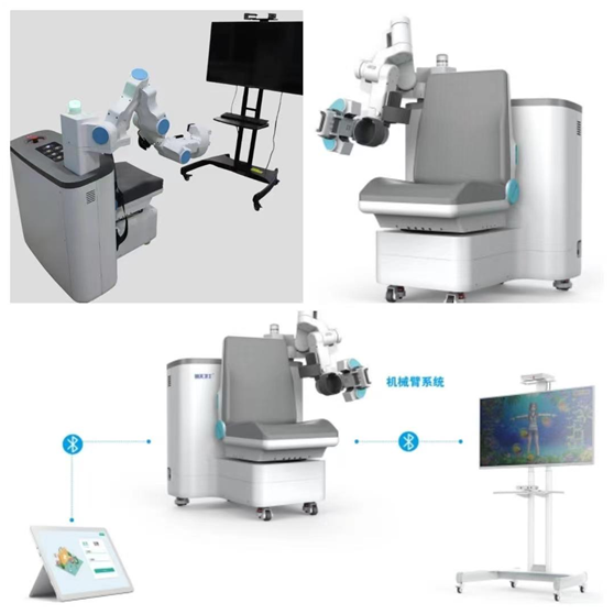 上肢康復(fù)設(shè)備I代機(jī)應(yīng)用于醫(yī)院康復(fù)中心幫助腦卒中患者或骨骼損傷患者的術(shù)后康復(fù)。產(chǎn)品共有5自由度、7種常用訓(xùn)練動作,可以實時模擬人體上肢運動規(guī)律,更加精準(zhǔn)、高效地進(jìn)行康復(fù)訓(xùn)練。