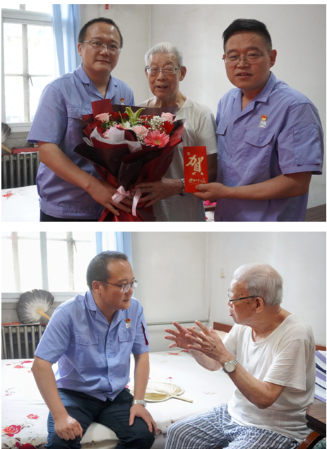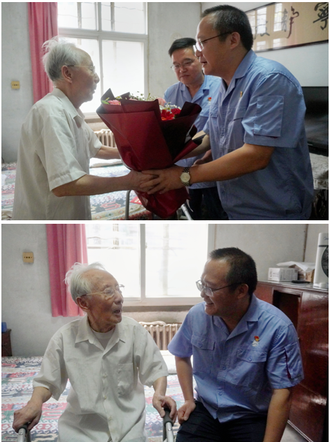 93歲的老黨員秦士豐和朱濱波,黨齡分別長達75年和76年,公司為他們送去慰問品和慰問金,向他們傳達關(guān)懷與溫暖,并致以節(jié)日的問候和祝福。在兩位老黨員家中,高元安仔細詢問了他們的身體、家庭及日常生活情況,并向他們介紹了公司近期的發(fā)展狀況,對他們?yōu)楣咀鞒龅呢暙I表示感謝,向他們終生投身黨的事業(yè)致以敬意。