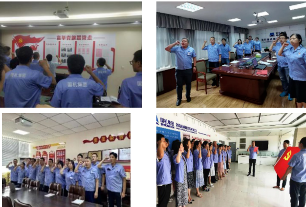 “七一”前夕,公司組織黨員以支部為單位,重溫入黨誓詞,“我志愿加入中國共產(chǎn)黨……隨時準(zhǔn)備為黨和人民犧牲一切,永不叛黨?!泵鎸h旗,全體黨員高舉右手,握拳過肩,錚錚誓詞飽含莊嚴(yán)與榮譽(yù)。
