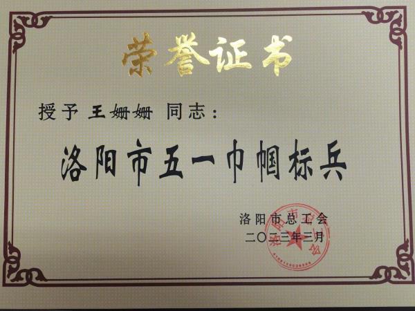3月6日,洛陽市總工會(huì)表彰了“2022年度洛陽市巾幗獎(jiǎng)先進(jìn)集體和先進(jìn)個(gè)人”,公司制造服務(wù)事業(yè)部王姍姍被授予“洛陽市五一巾幗標(biāo)兵”榮譽(yù)稱號(hào)。