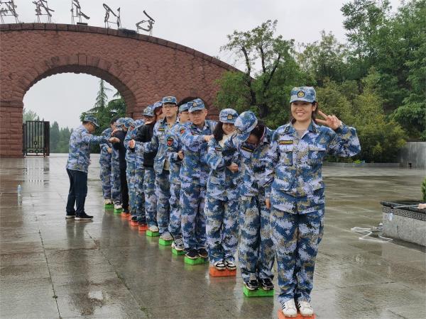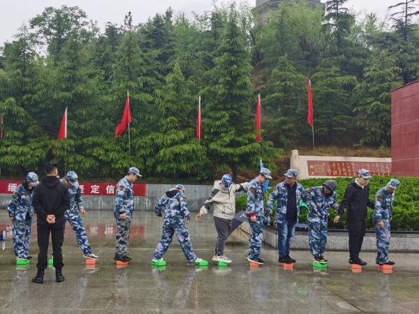 在“摸石過河”項目中,憑借隊友堅實的肩膀,大家在綿綿細雨中,用信任、支持、合作,成功邁向終點。