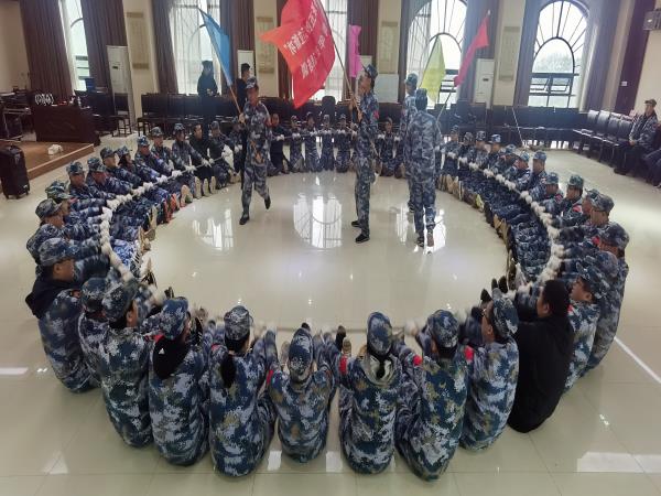 立正、稍息、報數(shù)、向右轉……跟隨鏗鏘有力的指令,拓展培訓正式開始。全體參訓人員迅速進入狀態(tài),忘卻了身份、年齡和性別,以拼搏者的姿態(tài)全情投入各項活動。經過群策群力的頭腦風暴,獵人隊、飛龍隊、雄鷹隊和泰山隊四支隊伍閃亮登場,開啟了兩天一夜的青春風采PK大賽。