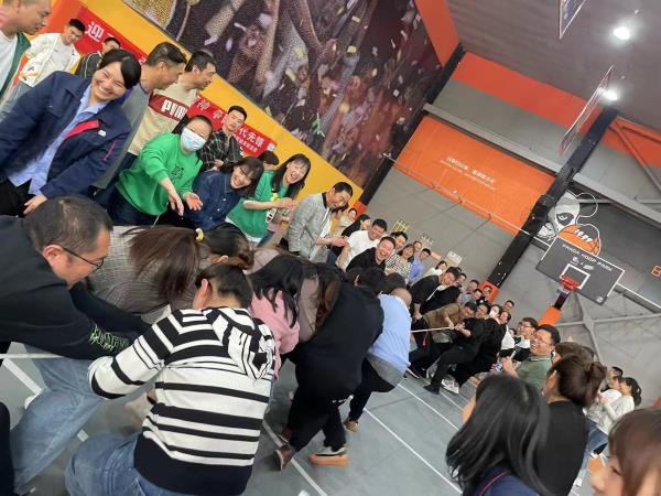 本次趣味運動會共設置了團隊跳繩接力、團隊跳大繩、接力賽、拔河、眾志成城等趣味比賽項目,事業(yè)部總經(jīng)理楊虎及副總經(jīng)理孫東帶領職工分為四個隊伍進行比賽。