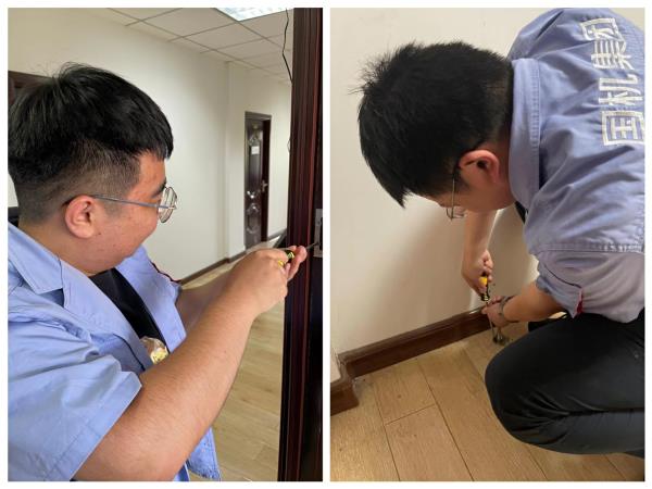 清洗過程中,大家明確分工、熱情滿滿,在辦公室之間來回奔波忙碌,用清潔工具將布滿污垢的空調(diào)濾網(wǎng)清洗干凈,晾干之后再裝回。同時,逐個檢查門窗桌椅,利用專業(yè)工具,對螺絲松動、脫落、椅子掉板、螺釘外冒、門框開裂、窗戶卡頓等現(xiàn)象進行了修理。