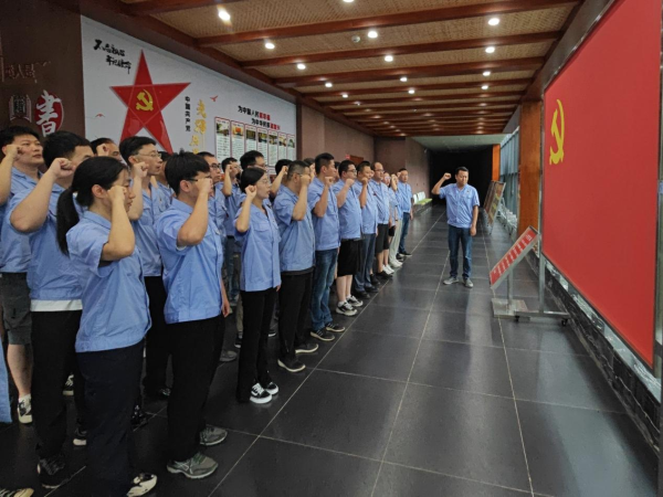實景學習完成后,隊員們走進宣誓廳,重溫入黨誓詞。由李繼鋒同志領(lǐng)誓,黨員同志們高舉右手,面對黨旗,鄭重宣誓:“我志愿加入中國共產(chǎn)黨,擁護黨的綱領(lǐng),遵守黨的章程,履行黨員義務(wù),執(zhí)行黨的決定,嚴守黨的紀律,保守黨的秘密,對黨忠誠,積極工作,為共產(chǎn)主義奮斗終身,隨時準備為黨和人民犧牲一切,永不叛黨?!卞P錚誓言,一字一句盡顯赤誠之心。
