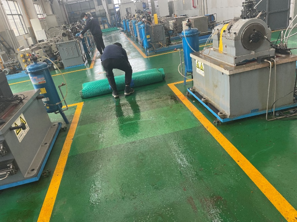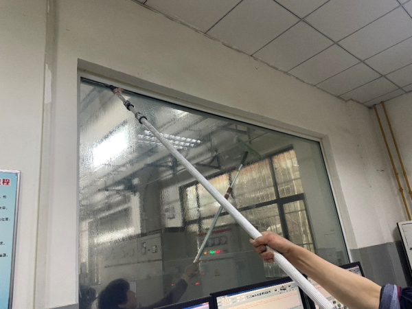 試驗(yàn)中心監(jiān)控室玻璃附著油霧和灰塵較多,透明度較差,影響值班室人員對(duì)試驗(yàn)現(xiàn)場(chǎng)的觀察。三支部黨員針對(duì)這一情況,開(kāi)展了“清理試驗(yàn)現(xiàn)場(chǎng)”活動(dòng),支部黨員紛紛拿起拖把抹布等清潔工具,對(duì)玻璃上的油漬和灰塵進(jìn)行清潔,清潔后的玻璃透明度明顯提升。同時(shí),試驗(yàn)室防滑墊由于浸油,防滑效果降低,事業(yè)部黨員對(duì)防滑墊進(jìn)行清洗,去除了其中的油漬,提升了防滑效果。