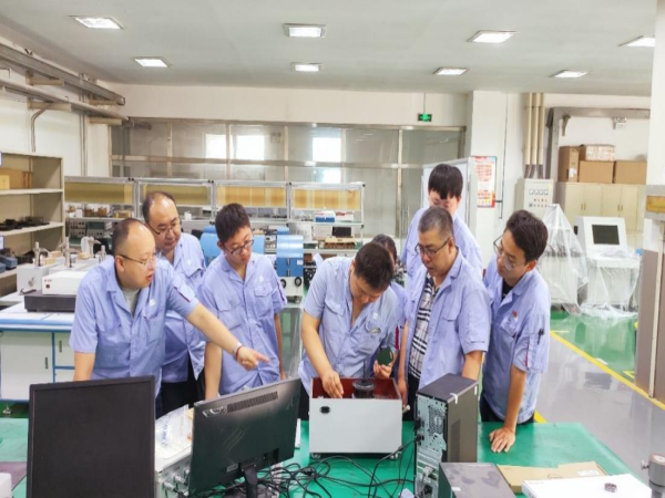 本次學習活動由技術班組與共建班組生產調試組聯合開展,技術班組組織各儀器的設計人員到生產調試一線,為生產調試人員培訓儀器的工作原理和操作方法。學習過程中,生產調試人員認真聆聽設計人員的講解,并積極提出裝配調試過程中遇到的問題,與設計人員進行溝通探討,現場學習氛圍濃厚。