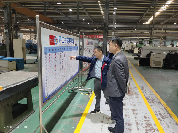 高飛現(xiàn)場(chǎng)考察了主軸制造部,視察了產(chǎn)品零件加工現(xiàn)場(chǎng),與技術(shù)、工藝和操作人員進(jìn)行深入交流,并仔細(xì)詢問(wèn)主軸制造部“三原色”班組建設(shè)情況。